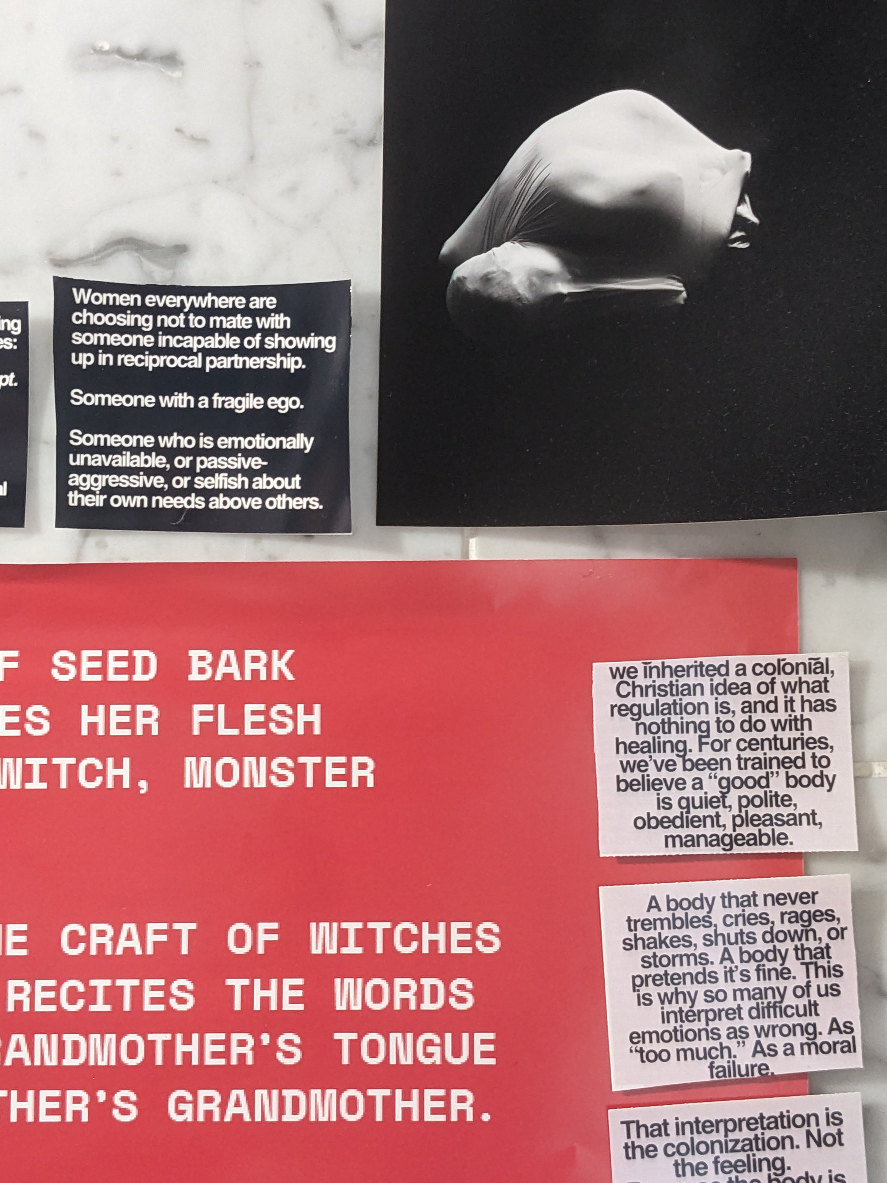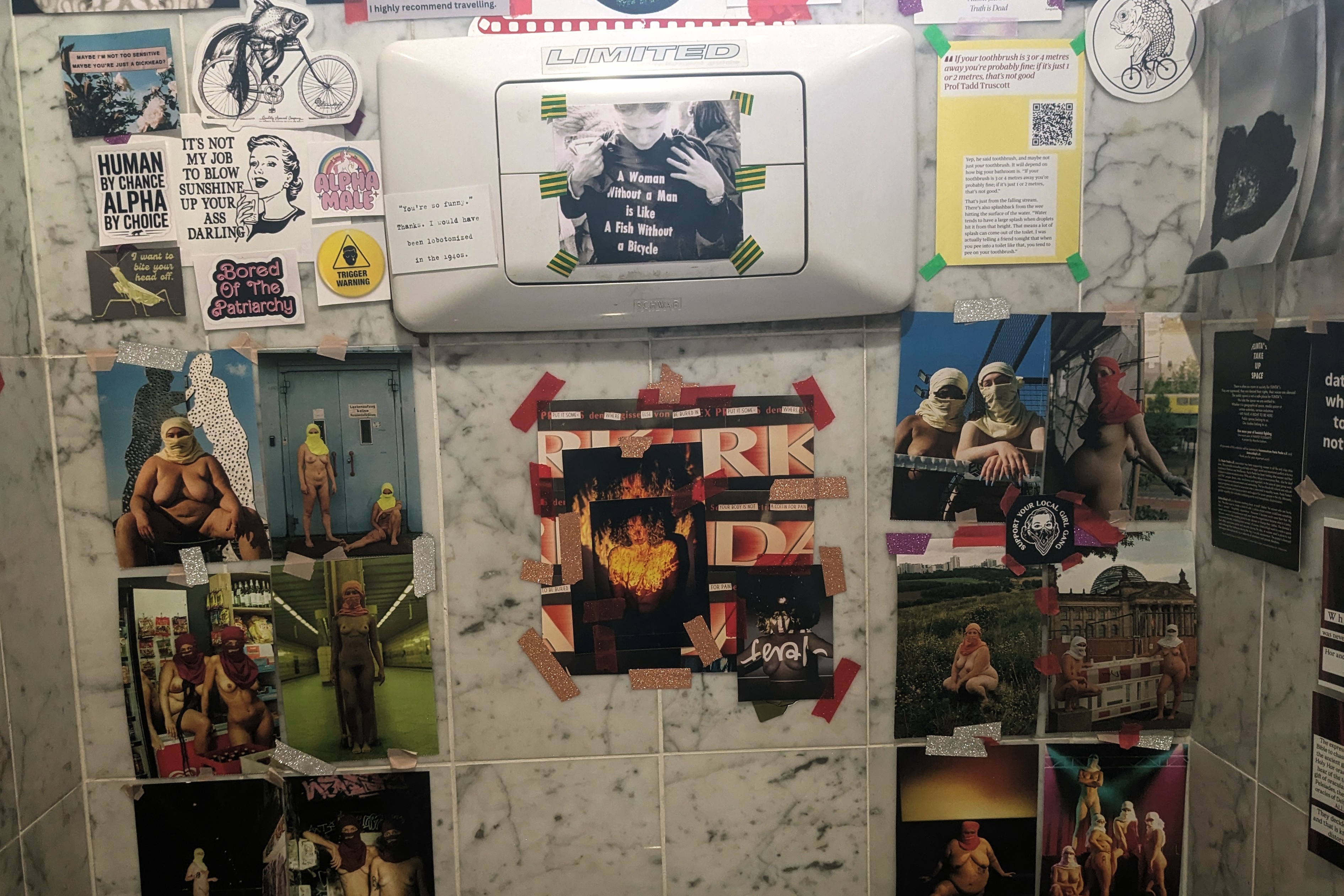 Nude and semi-nude bodies become canvases for bold language and visual interventions, emphasizing a raw, feral form of creative liberation. Rather than offering healing aesthetics or empowerment narratives, the manifesto embraces discomfort: Anger, pain, rage, exhaustion, pessimism, vulnerability and emotional complexity are positioned not as weaknesses, but as political and creative resources for resistance.